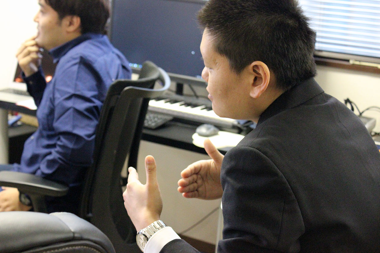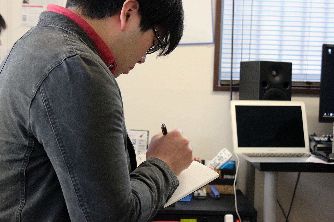 自分は、高校が音楽系でとりあえず曲を作りたいと思っていて、他にも候補があったんだけど、決め手となったのは新名先生の人柄。一回名刺頂いてから頻繁にメールとかでやり取りするようになって、困ったことがあったら電話してきてって言われて、実際に電話もしたし。仕事するときもそうですけどコミュニケーションって大事ですね。そういうことをされていたからこそ行ったんじゃないかな。
