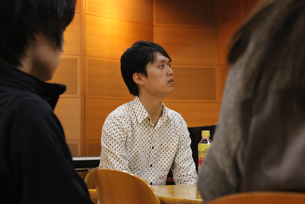 INTERVIEW 城本芳裕 城本芳裕 城本芳裕 インタビュー 2019年11月11日、作曲活動を続けながらネットショップ運営会社に勤務する、音デ7期生「城本芳裕(しろもとよしひろ)」さんを学内スタジオに招いてインタビューを行いました。 インタビュアー:音デ12期生 八木 陽哉(ハルヤ)・淺倉景太(ケイタ) (一同)よろしくお願いします! Q (ハルヤ) 今はどのような仕事をされていますか? A (城本さん) ネットショップの会社で、商品の広告を作ったりするデザインの仕事をしています。 多分皆さん使ってると思うんですけど、Amazon、楽天、Yahooとかに出品するの商品画像やバナーのデザインをしています。 Q (ハルヤ) ジャンルとか決まってなくて、色々な商品って感じですか? A (城本さん) そうですね。例えばホームセンターとか、家電量販店とかにある、家具家電やアウトドア商品などを販売してます。 Q (ハルヤ) そういう広告を作った中で、この商品は凄い売れたな~とかありますか? A (城本さん) 今でいうとクリスマスツリーとかイルミネーションとか結構力を入れてて。 Q (ハルヤ) 季節に合ったものを。 A (城本さん) そうそう、季節用品とか。 Q (ハルヤ) 今の仕事で、苦労してる所とかありますか? A (城本さん) ちょっと仕事内容とはまた違うかもしれないんですけど、結構1日中座りっぱなしで、本当に休憩時間ぐらいしか立たないぐらいの。 Q (ハルヤ) あ~~~ A (城本さん) まぁ立っていいんですけど、集中したらいつの間にか座りっぱなしになってて。結構、足腰とか・・・(笑) T (藤原先生) 運動不足になるのだよ、こういう仕事してると。 A (城本さん) そうですね~。なので黙々とやる人は向いてるかもしれないですね。デザイン系は。 Q (ハルヤ) 今まで別の職業は何かされてましたか? A (城本さん) 今が3社目なんですけど、大学卒業して最初入ったのが、同じデザイン系なんですけど、新聞の折り込みチラシ専門のデザインですね。 その次が、カレンダーのデザインやってて、まぁ全部デザイン系なんですけど。 Q (ハルヤ) デザイン系の仕事を通して今の所に。今の所に転職された理由は? A (城本さん) カレンダーの会社で働いてた時に、自社サイトがあって販売してたんですけど、ネットに掲載する画像やバナーを作ることがあったんです。それをきっかけに、紙媒体じゃなくネットに興味持つようになって、ちょっと面白いなぁと思って、それで探してみたって感じですね。 Q (ハルヤ) デザインを考える上で、気を付けている所はありますか? A (城本さん) 見る人のことを考えて作ります。自己満足にならないようにってのは思ってますね。 芸術作品とは違うんで、その商品が売れてなんぼなんで。 Q (ハルヤ) ずっとデザインをされていて、やりがいだったり、楽しいと思える部分って何かありますか? A (城本さん) 例えば・・・自分が作ったデザインの商品が、売れたかどうか気になるじゃないですか。 ネットショップなので、何日に何個売れたか、ちゃんとデータとして見えるんで、それが嬉しいです。 自分が作ったその日から売り上げが伸びてたりしたら「効果あったんだ!」って。 やりがいにも繋がると思います。 Q (ハルヤ) 仕事の中で、こういうところ拘ってますとか、自分の強味みたいなものって何かありますか? A (城本さん) 自分がいざその商品を目にした時に、買いたいと思えるか?は基準にしてて、自分がいらないなと思うものでも、ちょっと欲しいかもと思わせるようには意識してます。 Q (ハルヤ) 大学生の時の思い出というか、作陽にいて楽しかったこと、役に立ったことは? A (城本さん) 同期の人たちと一緒に音楽をやれたことですね。周りにやってる人がいなくて、今まで自分1人で音楽やってたんで。 それはそれで楽しかったんですけど、音デに入って、自分とは全然違う音楽をやっている人と一緒に演奏したりするのが凄く楽しかったです。 Q (ハルヤ) 楽器は何ですか? A (城本さん) エレクトーンです。 エレクトーンはヤマハなんですけど、自分はカワイのドリマトーンっていう楽器です。 ドリマトーンって言うとちょっと通じない人がいるんで自分はエレクトーンって言ってるんですけど。 高校からピアノやってましたね。 Q (ハルヤ) どういう音楽が好きですか? A (城本さん) 本当に色々好きなんですけど、歌ものからインストまで、 劇伴 とかも好きですし。 Q (ハルヤ) 結構幅広く。 A (城本さん) 広く浅くみたいな(笑) 今でも和風曲とかピアノを主体とした曲は人並み程度には作れるかなと思ってます。 Q (ハルヤ)<br>影響を受けたとか、音楽を始めたきっかけとか、そういうアーティストっていらっしゃいますか? A (城本さん) アーティストと作曲家がいて、アーティストはずっとBUMP OF CHICKENです。 作曲家が佐藤直紀さんっていう、『海猿』・『ウォーターボーイズ』・大河ドラマの『龍馬伝』とか作曲してる人で、曲を作るきっかけになったのもその人です。 Q (ハルヤ) その人の音楽を聴いて、影響を受けて自分もやって